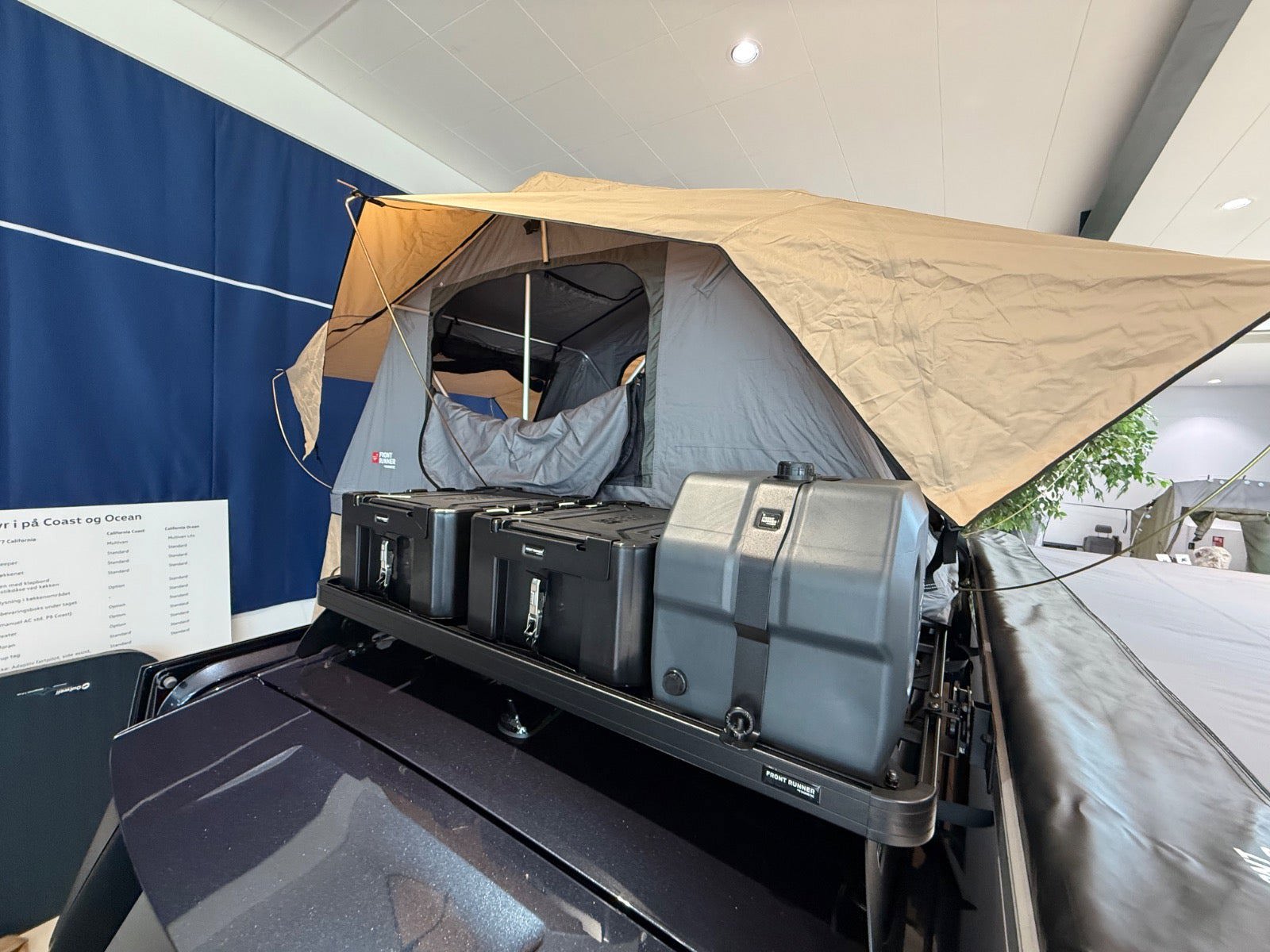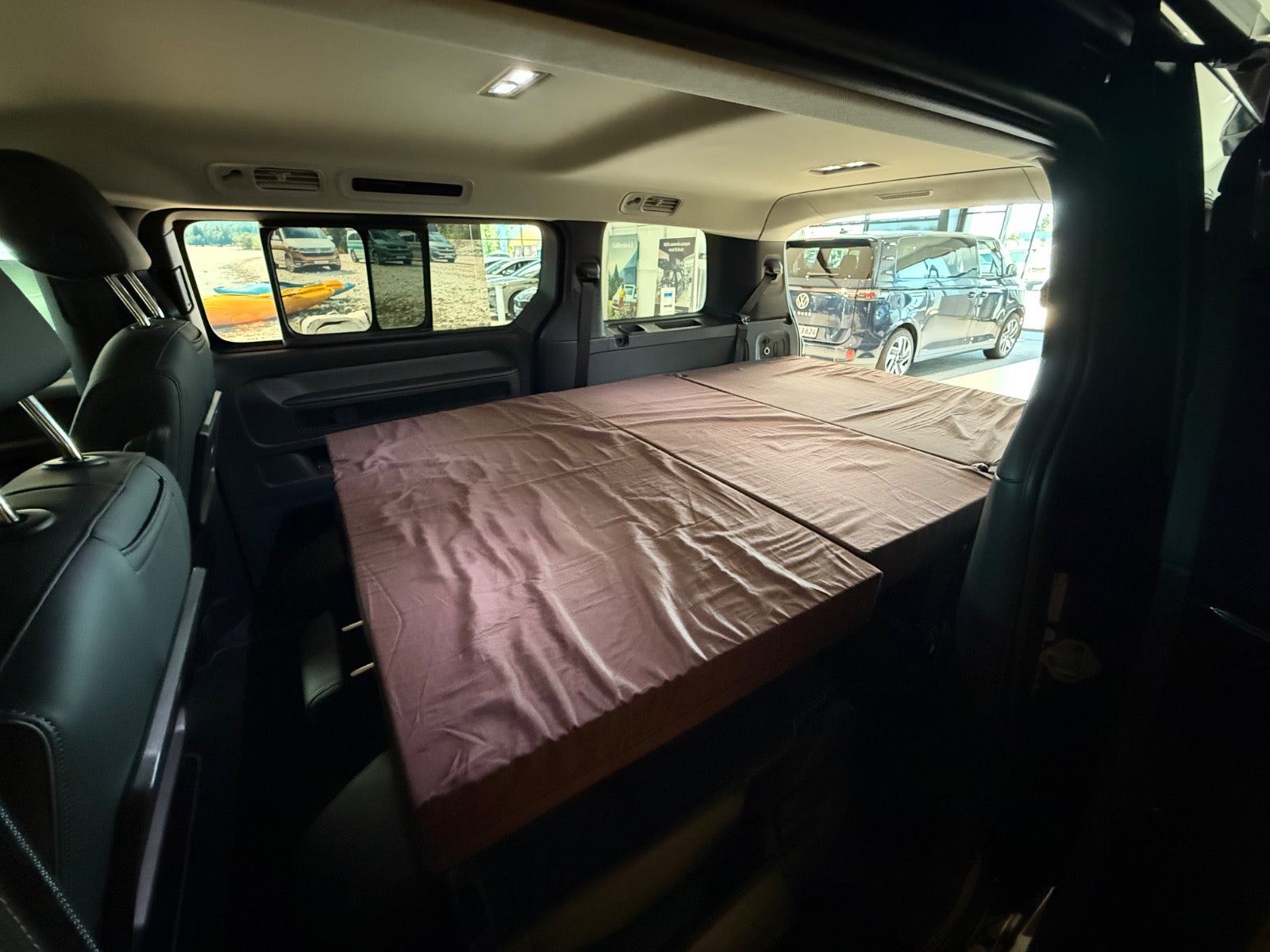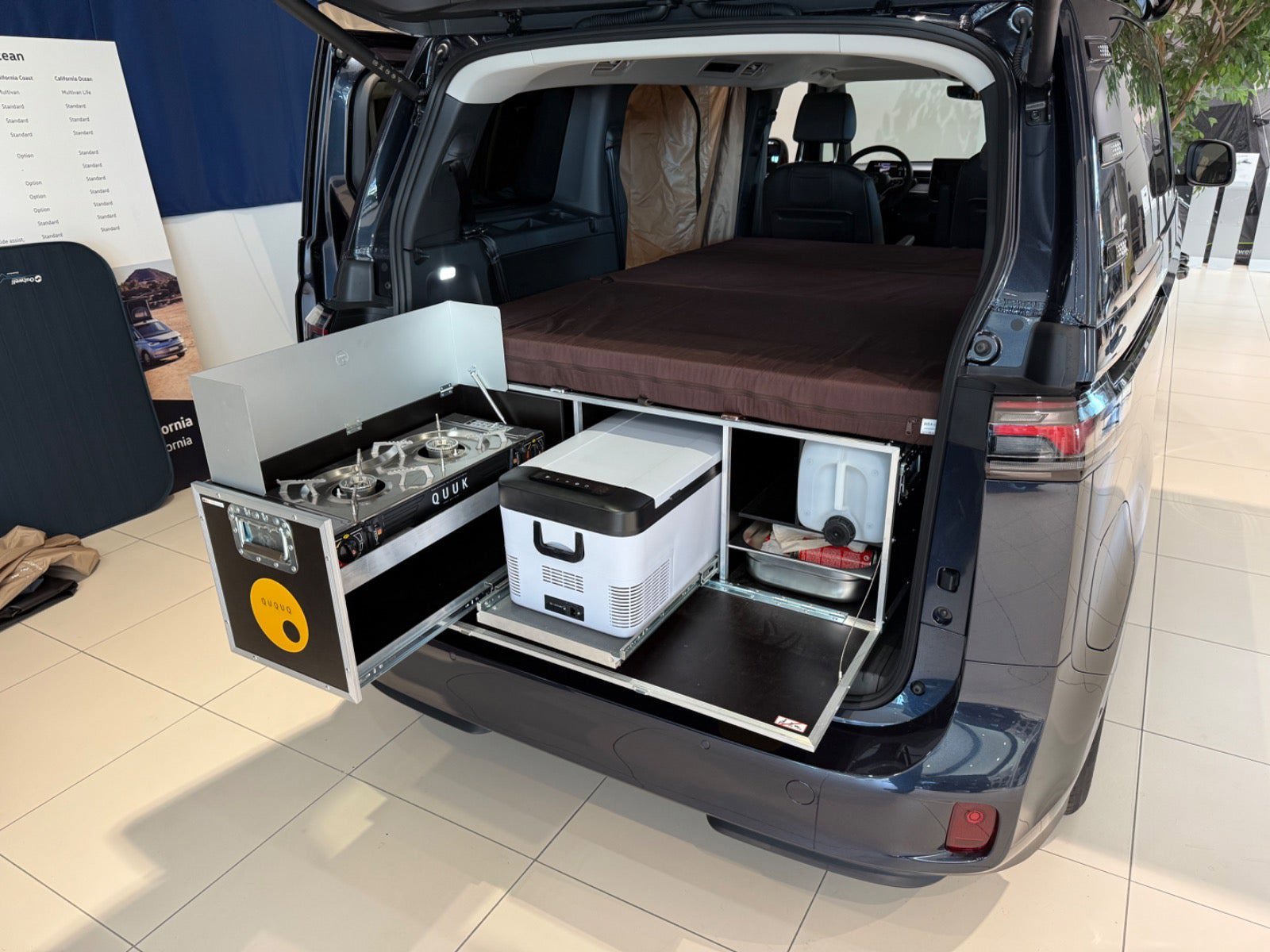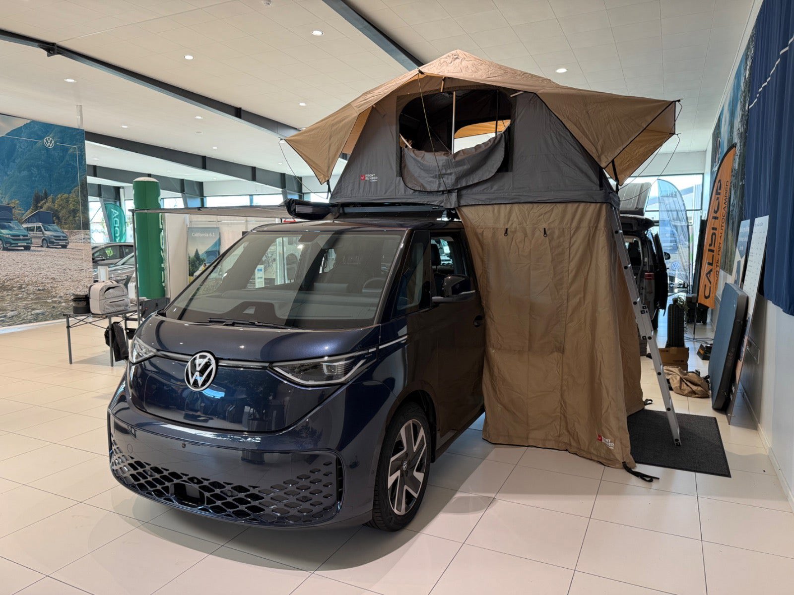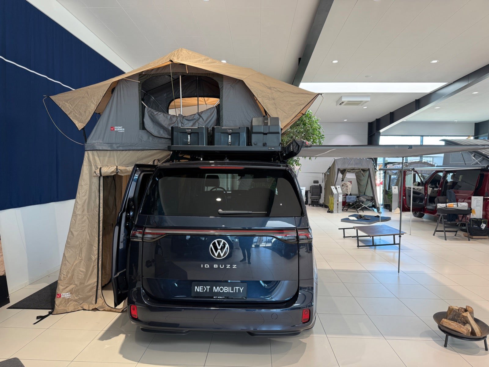 - Drejesokler til begge forsæder med syn med konstruktive ændringer - Tagbagagebærer Roof Rack Front Runner LWB med montering - Tagtelt fra Front Runner med montering samt quick realease beslag - Markise 2,5 m fra Front Runner med montering samt Quick release beslag - Seng og køkken boks til VW ID:Buzz - Køleboks, passer til Ququq - Anneks til tagtelt - Vandtank med beslag samt tap udvidelsesbeslag - Vindskærm til Roof rack med montering - 2 stk Wolf Pack Pro kasser med montering - Rudetasker til begge sider - LWB komplet termo rudeafdækning