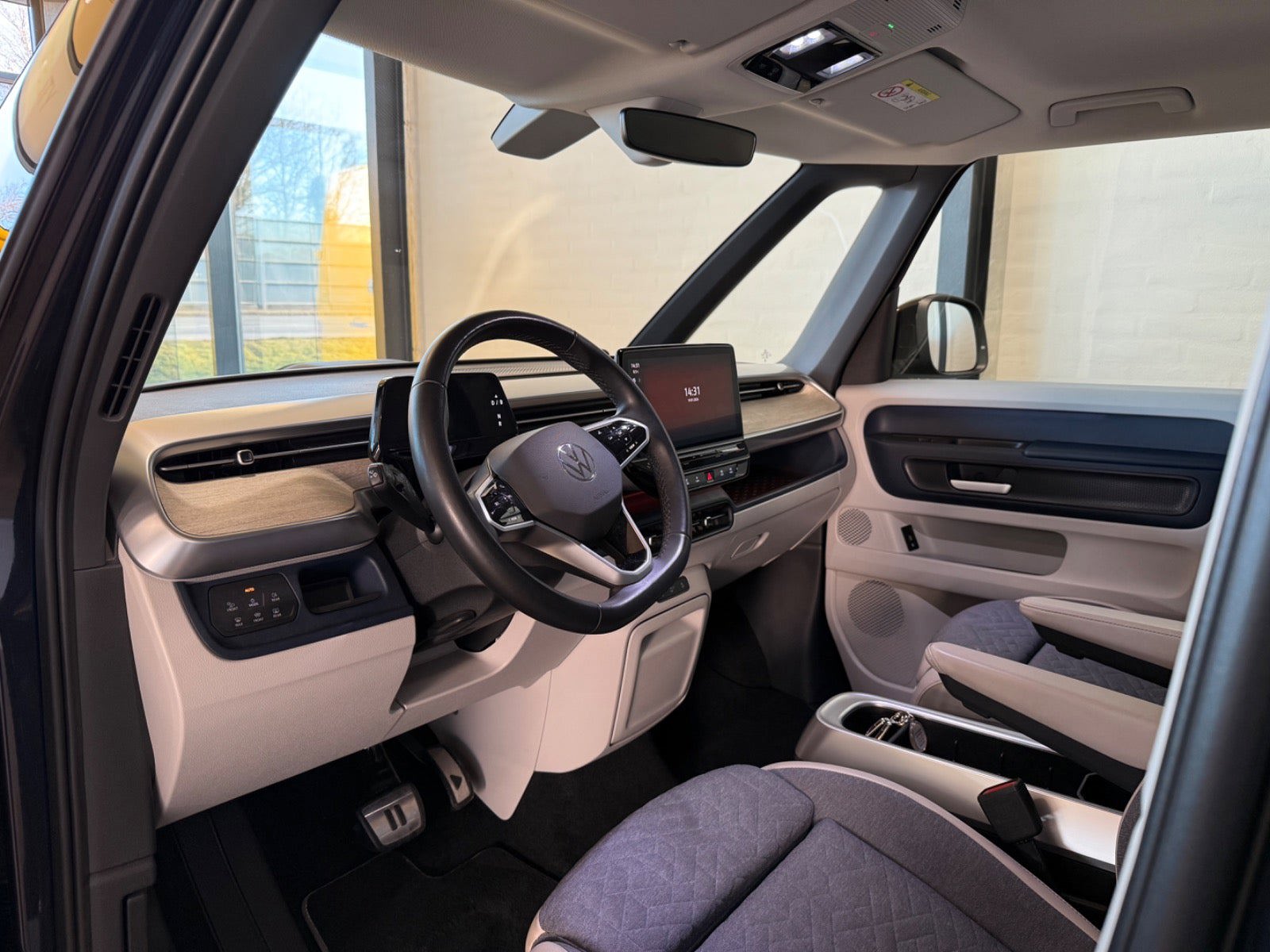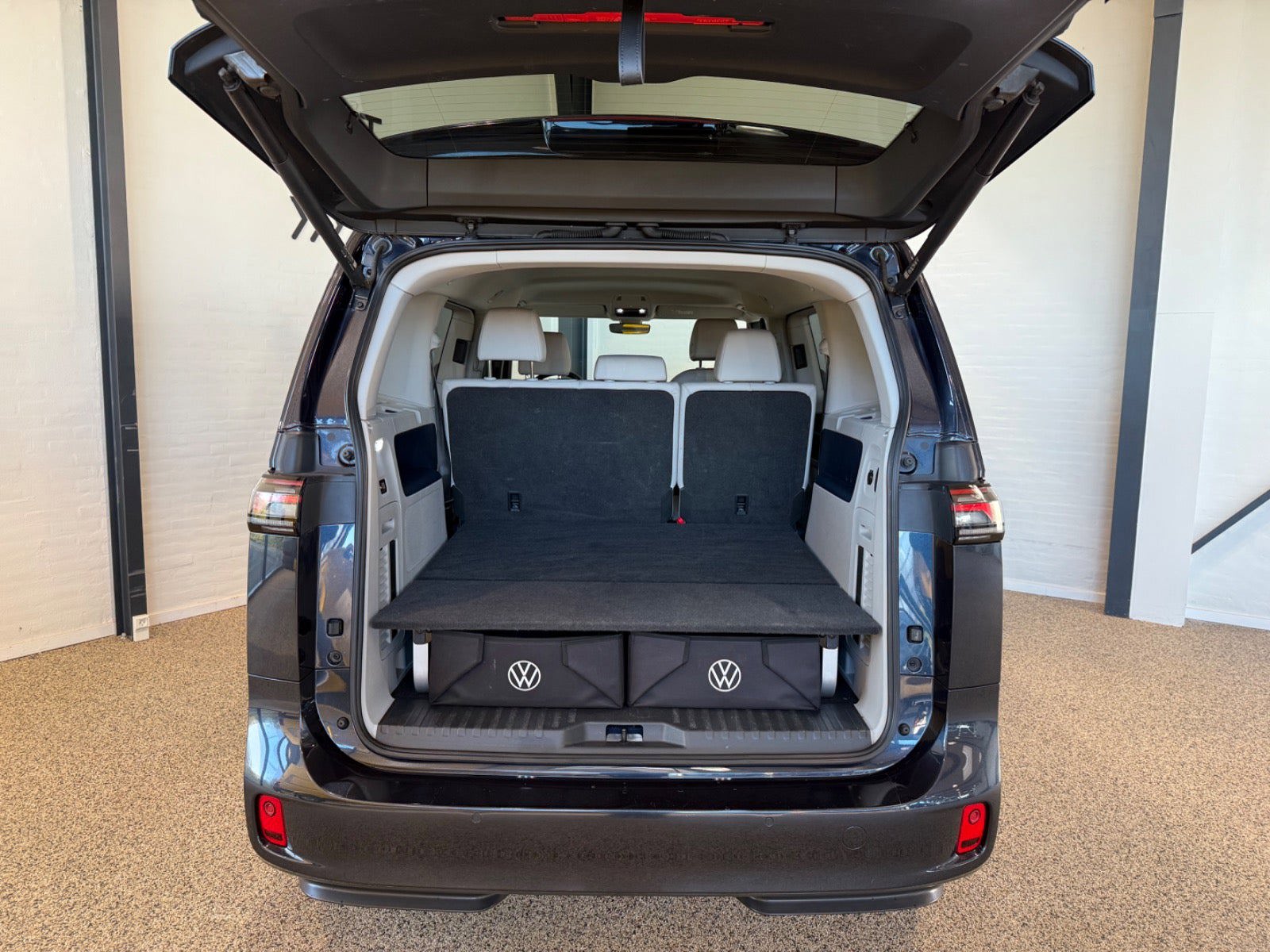 Topudstyret ID.Buzz Style Vinterhjul medfølger Multiflexbund (to-delt bagagerum) inkl. 2 opbevaringskasser Anhængertræk med svingbar krog og el-frigørelse Bakkamera inkl. 360 gr. Area View LED-Matrix-forlygter Sædeindstilling elektrisk til begge forsæder med memory & massage El-bagklap med Easy Open El-skydedøre i højre- og venstre side 20" Letmetalfælge Solna Travel Assist Adaptiv fartpilot